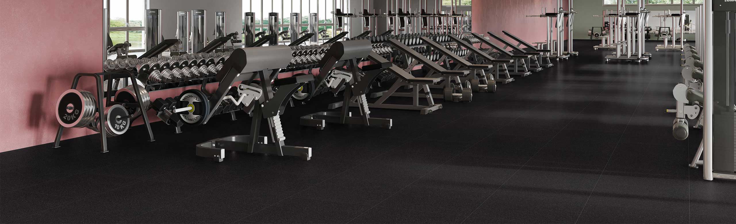Nasze płytki REGUPOL everroll crosstile do centrów fitness cechuje neutralny charakter. Mogą być układane luzem i łączone za pomocą systemu kołków wtykowych, co pozwala na szybki i sprawny montaż. Nasza podłoga do centrów fitness służy do ochrony podłoża oraz zapewnia sportowcom optymalne warunki do treningu. W przypadku upuszczenia hantli lub kettlebelli, albo ich niekontrolowanego odłożenia, produkt REGUPOL everroll crosstile zapewnia niezbędne tłumienie i absorpcję uderzeń w Twoim centrum fitness. Płytki te są niezwykle solidne i odporne na uszkodzenia.